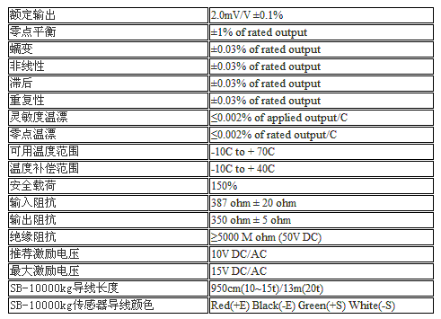 美國(guó)Transcell SB-10000kg稱重傳感器SB系列所有的量程如下:5Oy廣州南創(chuàng)電子科技有限公司